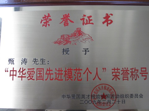 我所甄涛律师被授予“中华爱国先进模范个人”荣誉称号