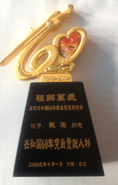 我所甄涛律师被授予“共和国六十年突出贡献人物”